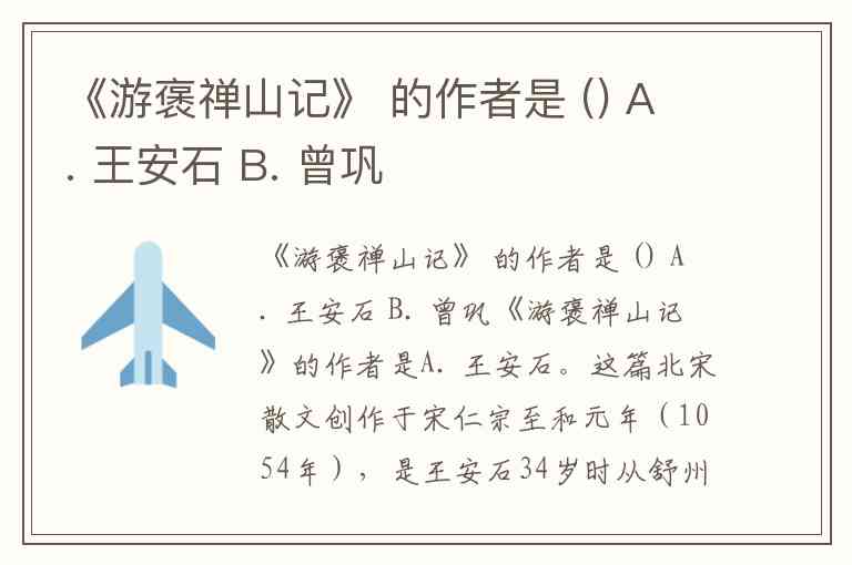 《游褒禅山记》 的作者是 () A. 王安石 B. 曾巩