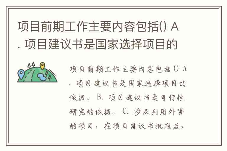 项目前期工作主要内容包括() A. 项目建议书是国家选择项目的依据。 B. 项目建议书是可行性研究的依据。 C. 涉及利用外资的项目,在项目建议书批准后,方可开展对外工作。 D.