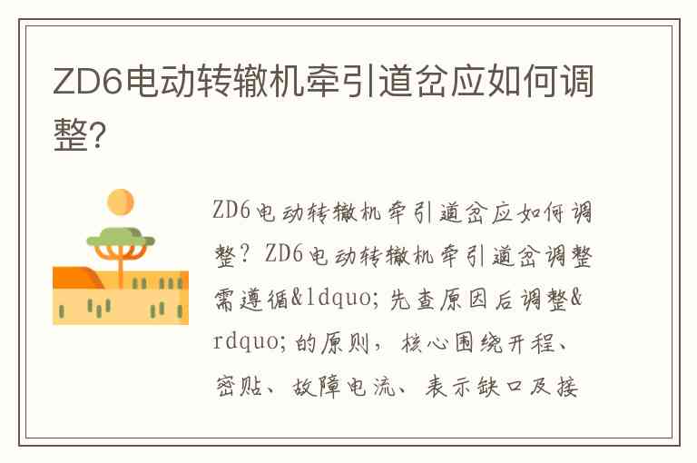 ZD6电动转辙机牵引道岔调整需遵循“先查原因后调整”的原则,核心围绕开程、密贴、故障电流、表示缺口及接点五大关键参数展开,需使用塞尺、钢板尺等专用工具确保精度。调整前需确认道岔缺口、密贴变化的根本原因,避免盲目调整导致问题反复。