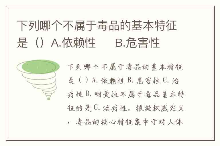 不属于毒品基本特征的是 C.治疗性。