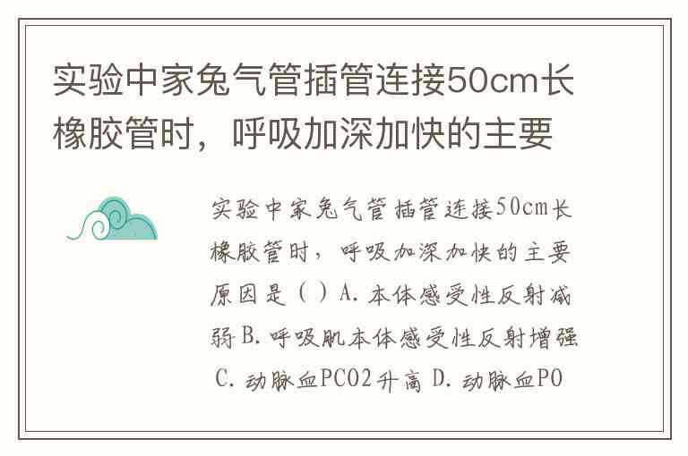 实验中家兔气管插管连接50cm长橡胶管时,呼吸加深加快的主要原因是()A.本体感受性反射减弱 B.呼吸肌本体感受性反射增强 C.动脉血PCO2升高 D.动脉血PO2升高 E.气道阻力增加