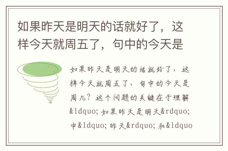 如果昨天是明天的话就好了,这样今天就周五了,句中的今天是周几?