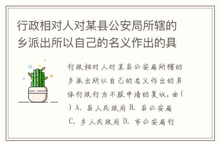 行政相对人对某县公安局所辖的乡派出所以自己的名义作出的具体行政行为不服申请的复议,由( ) A. 县人民政府 B. 县公安局 C. 乡人民政府 D. 市公安局