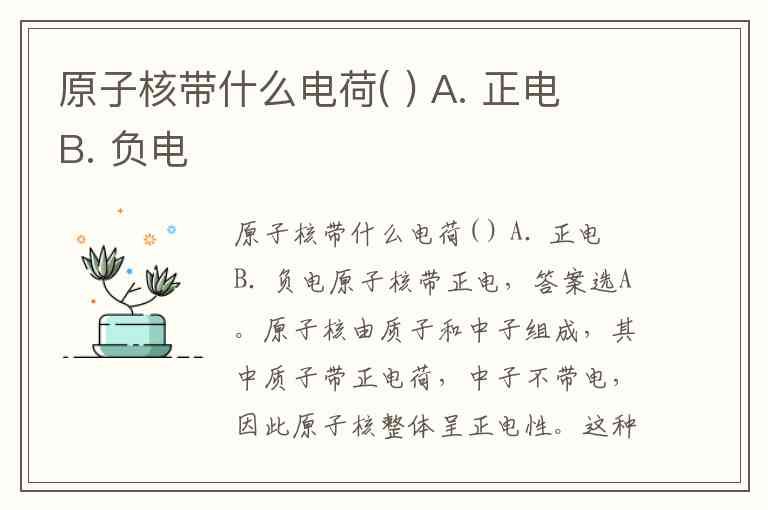 原子核由质子和中子组成,其中质子带正电荷,中子不带电,因此原子核整体呈正电性。这种正电荷的数量被称为核电荷数(用Z表示),等于核内质子的总数。例如,氢原子核只有1个质子,带1单位正电荷;氦原子核有2个质子,带2单位正电荷。