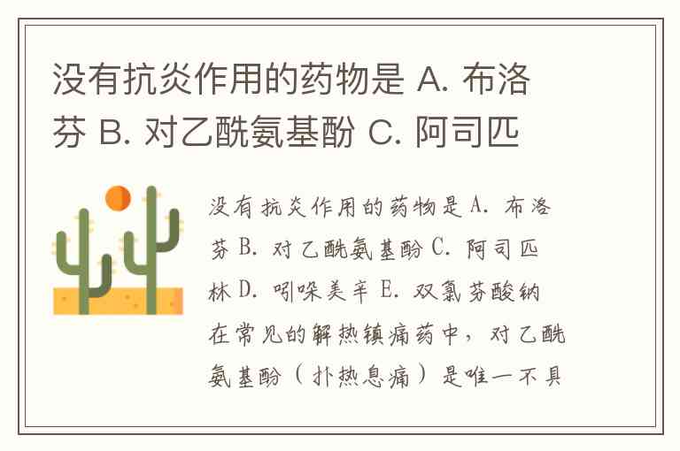 没有抗炎作用的药物是 A. 布洛芬 B. 对乙酰氨基酚 C. 阿司匹林 D. 吲哚美辛 E. 双氯芬酸钠