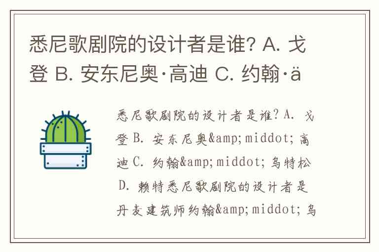 悉尼歌剧院的设计者是谁? A. 戈登 B. 安东尼奥·高迪 C. 约翰·乌特松 D. 赖特
