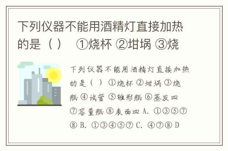 综上,不能直接加热的仪器为①③⑤⑦⑧,对应选项A。实验中需严格遵循仪器使用规范,避免因加热方式错误导致仪器破裂或实验误差。