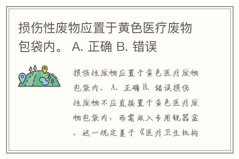损伤性废物应置于黄色医疗废物包袋内。 A. 正确 B. 错误