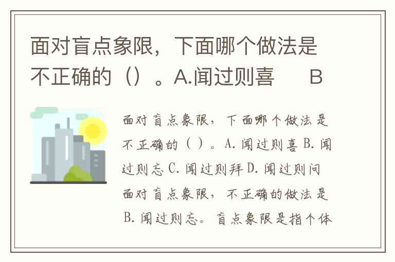 面对盲点象限,下面哪个做法是不正确的()。A.闻过则喜 B.闻过则忘 C.闻过则拜 D.闻过则问