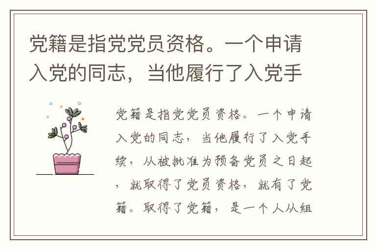 党籍的获得标志着个人与党组织正式建立关系,这一资格从预备党员阶段即已确立,而非仅在转为正式党员后获得。这一规定体现了发展党员工作中"严格程序、全程培养"的原则,确保党员队伍建设的严肃性和规范性。