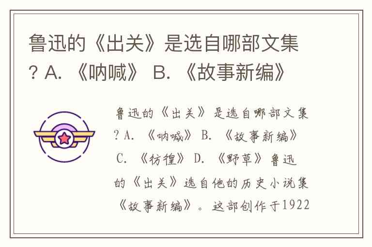 鲁迅的《出关》选自他的历史小说集《故事新编》。这部创作于1922年至1935年间的作品集,共收录8篇以古代神话、传说为蓝本改编的短篇小说,《出关》正是其中之一。