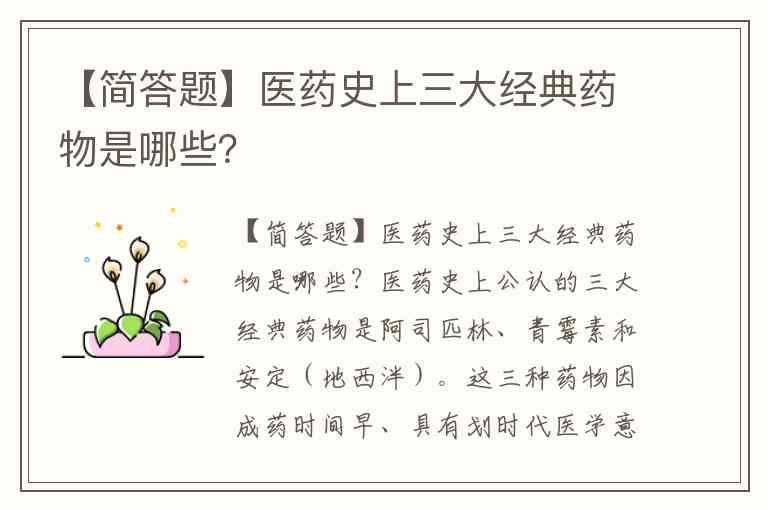 【简答题】医药史上三大经典药物是哪些?
