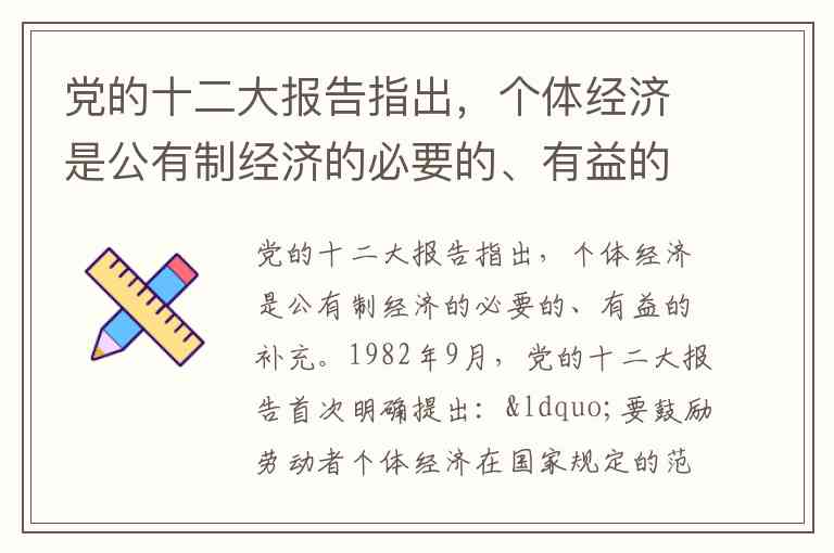 党的十二大报告指出,个体经济是公有制经济的必要的、有益的补充。
