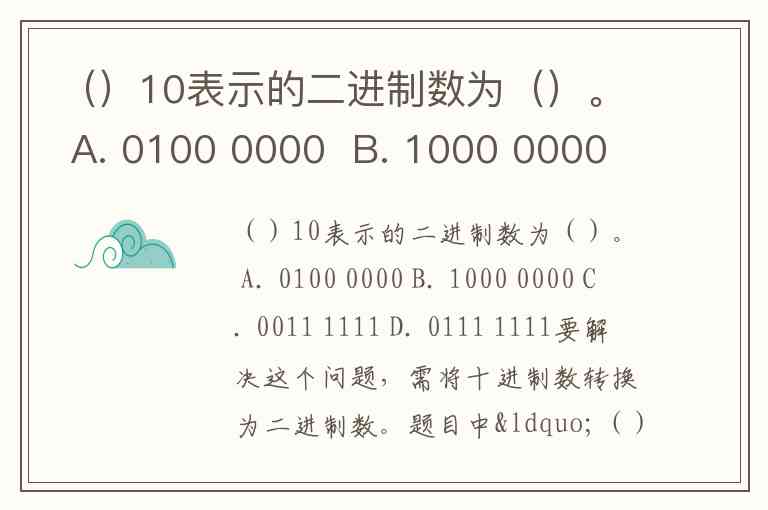 ()10表示的二进制数为()。 A. 0100 0000 B. 1000 0000 C. 0011 1111 D. 0111 1111