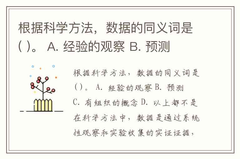 根据科学方法,数据的同义词是( )。 A. 经验的观察 B. 预测 C. 有组织的概念 D. 以上都不是