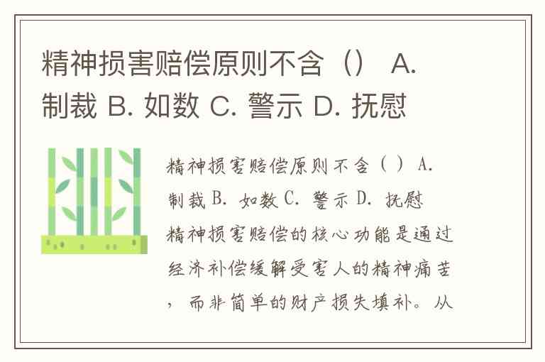 精神损害赔偿原则不含() A. 制裁 B. 如数 C. 警示 D. 抚慰