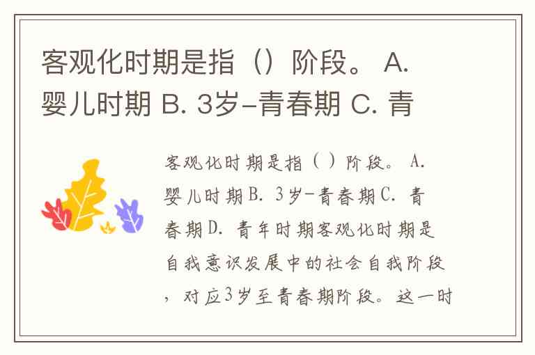 客观化时期是指()阶段。 A. 婴儿时期 B. 3岁-青春期 C. 青春期 D. 青年时期