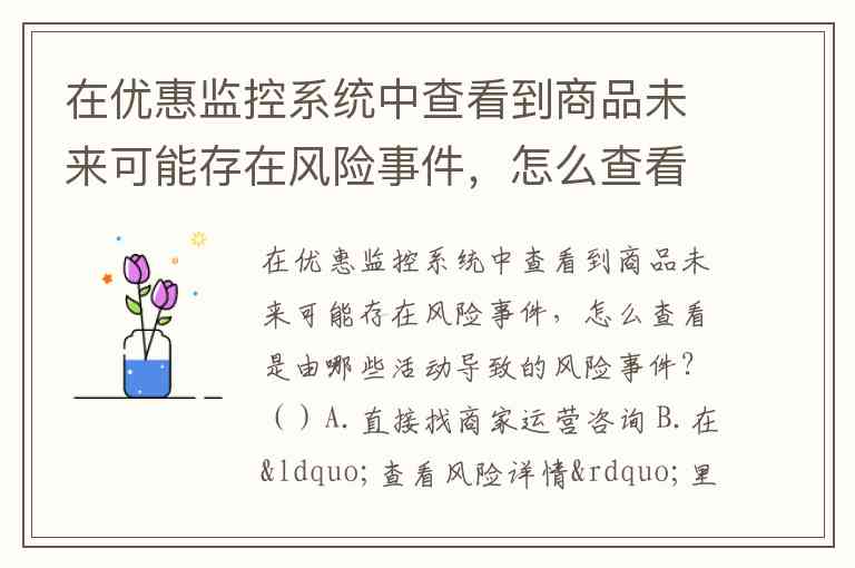 在优惠监控系统中查看到商品未来可能存在风险事件,怎么查看是由哪些活动导致的风险事件?()A.直接找商家运营咨询 B.在“查看风险详情”里面,点击每一条风险事件后的“操作-详情”进行查看 C.在商家后台查看 D.没有可以查看活动的功能