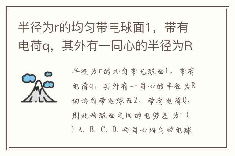 半径为r的均匀带电球面1,带有电荷q,其外有一同心的半径为R的均匀带电球面2,带有电荷Q,则此两球面之间的电势差 为:( ) A. B. C. D.