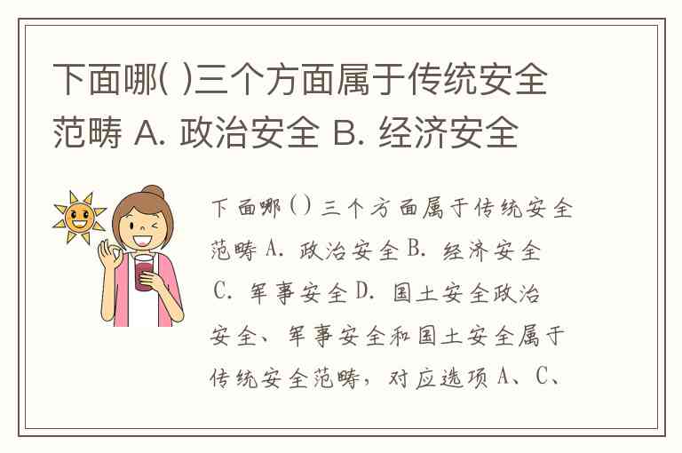 下面哪( )三个方面属于传统安全范畴 A. 政治安全 B. 经济安全 C. 军事安全 D. 国土安全