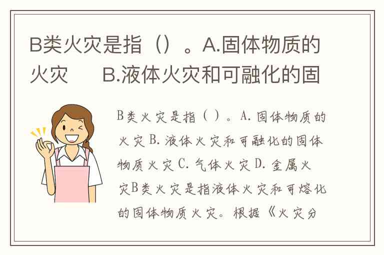 正确答案为B选项。理解这一分类不仅是消防安全知识的基础,更能在实际场景中指导选择正确的应急处置措施,降低火灾风险与损失。