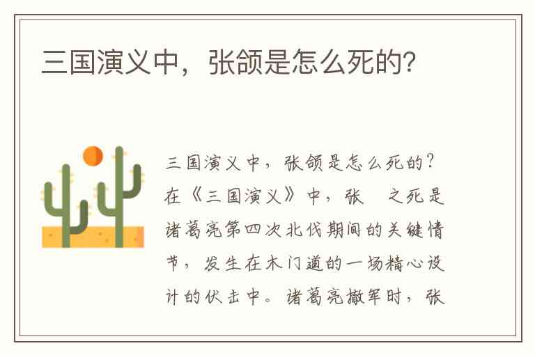 三国演义中,张颌是怎么死的?
