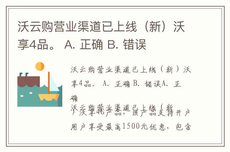 沃云购营业渠道已上线(新)沃享4品。 A. 正确 B. 错误