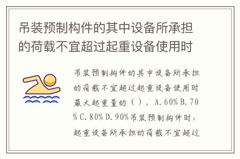 吊装预制构件的其中设备所承担的荷载不宜超过起重设备使用时最大起重量的()。A.60% B.70% C.80% D.90%