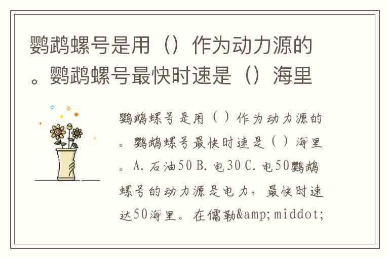 鹦鹉螺号是用()作为动力源的。鹦鹉螺号最快时速是()海里。A.石油50 B.电30 C.电50