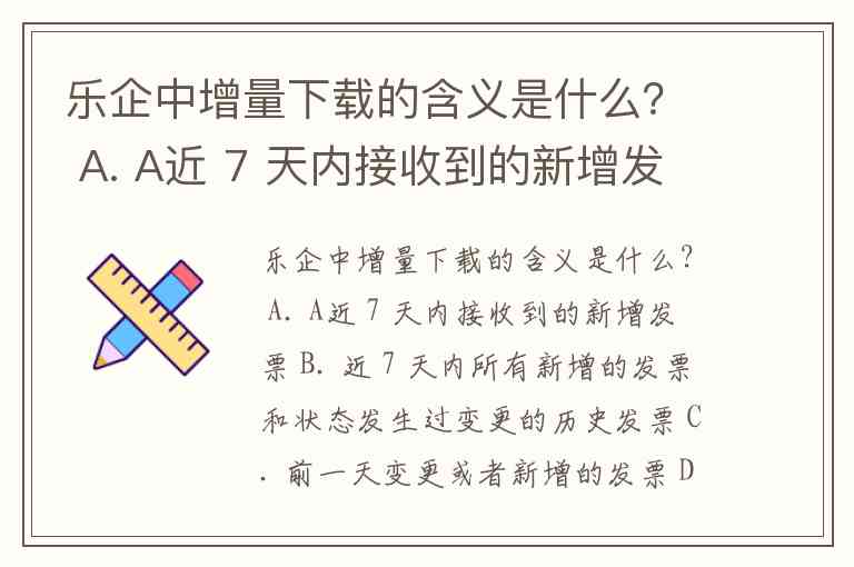 综上,乐企增量下载的准确含义应为**"近7天内所有新增的发票和状态发生过变更的历史发票"**(选项B)。这一设计既确保了数据的时效性,又避免了重复传输未变更的历史数据,是兼顾完整性与效率的最优方案。企业在配置时需注意,若需获取超过7天的历史变更记录,可能需要结合全量下载功能使用。