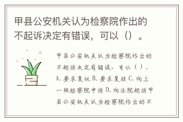 甲县公安机关认为检察院作出的不起诉决定有错误,可以()。A.要求复议 B.要求复核 C.向上一级检察院申诉 D.向法院起诉