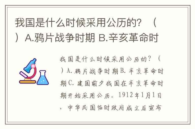我国是什么时候采用公历的?()A.鸦片战争时期 B.辛亥革命时期 C.建国前夕