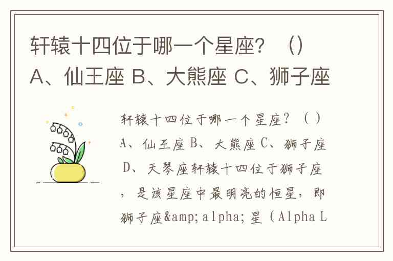 轩辕十四位于哪一个星座?()A、仙王座 B、大熊座 C、狮子座 D、天琴座
