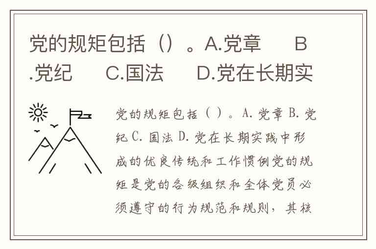 党的规矩包括()。A.党章 B.党纪 C.国法 D.党在长期实践中形成的优良传统和工作惯例