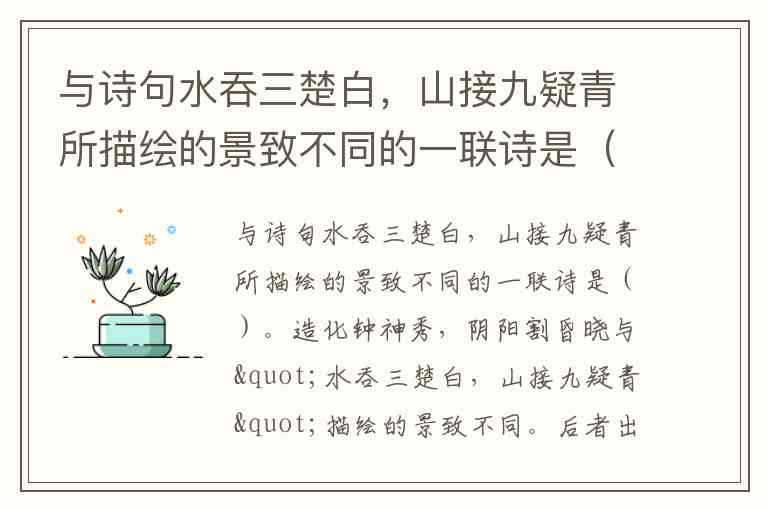 与诗句水吞三楚白,山接九疑青所描绘的景致不同的一联诗是()。