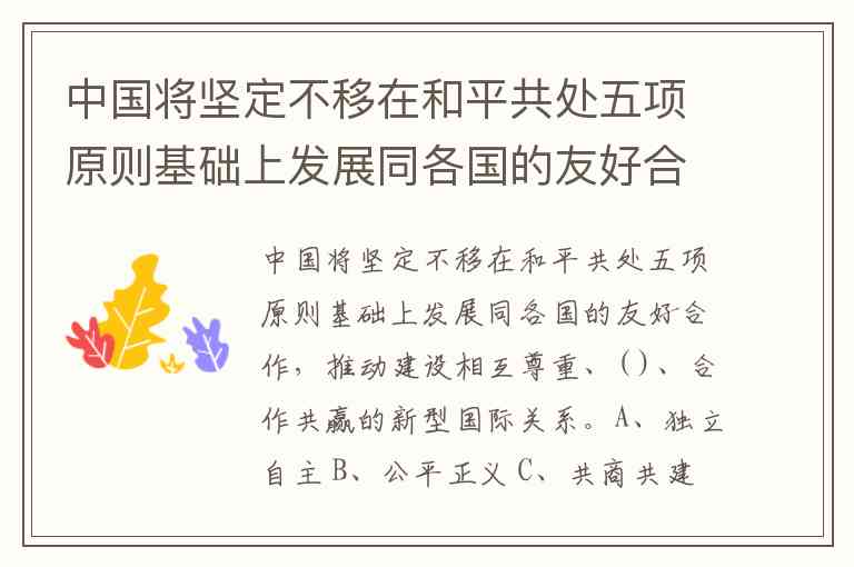 中国将坚定不移在和平共处五项原则基础上发展同各国的友好合作,推动建设相互尊重、( )、合作共赢的新型国际关系。A、独立自主 B、公平正义 C、共商共建 D、开放包容