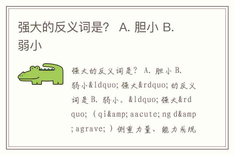 “强大”(qiáng dà)侧重力量、能力或规模上的优势,如“强大的军队”“强大的企业”。其核心反义应体现“力量不足、能力薄弱”的含义。