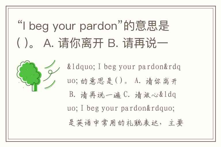 “I beg your pardon”的意思是( )。 A. 请你离开 B. 请再说一遍 C. 请放心