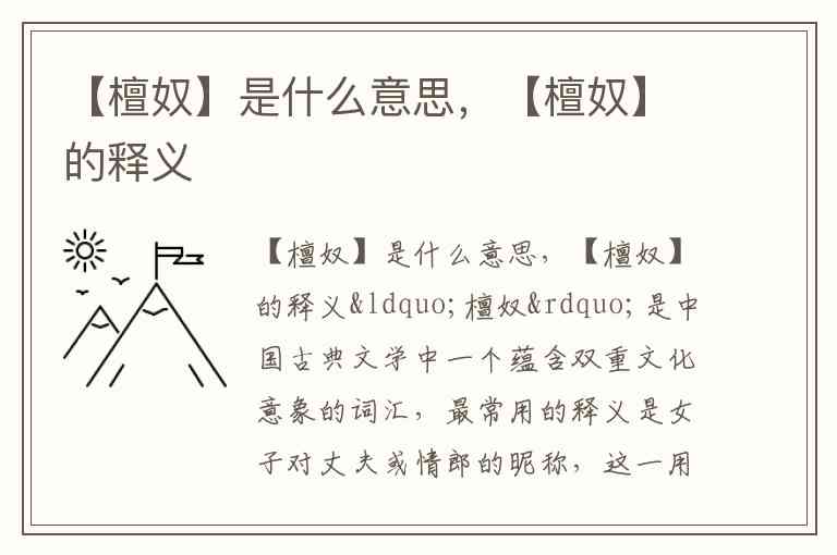 “檀奴”是中国古典文学中一个蕴含双重文化意象的词汇,最常用的释义是女子对丈夫或情郎的昵称,这一用法在清代文献中尤为常见。例如清人陈维崧《海棠春》词中“檀奴笑觅南朝手”,以及王韬《淞滨琐话》中“檀奴抑何狡獪哉”的对话,均是以亲昵口吻称呼爱慕对象。这一含义的形成与“檀郎”典故直接相关——西晋文学家潘岳(潘安)姿容俊美,小名“檀奴”,后世遂以“檀郎”代指美男子,“檀奴”作为其昵称形式,逐渐演变为女性对伴侣的爱称。