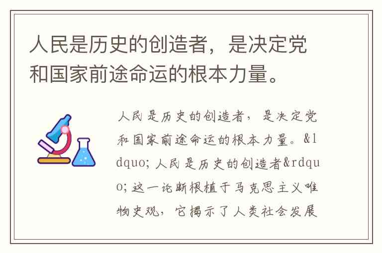 人民是历史的创造者,是决定党和国家前途命运的根本力量。