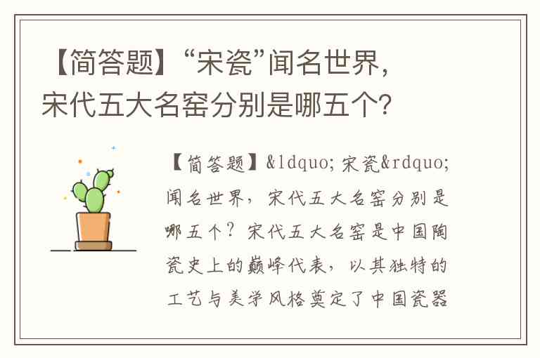 【简答题】“宋瓷”闻名世界,宋代五大名窑分别是哪五个?