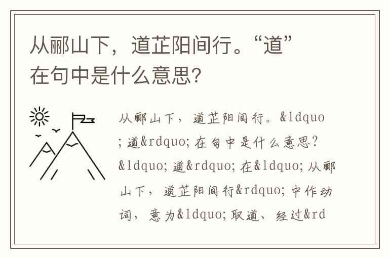 从郦山下,道芷阳间行。“道”在句中是什么意思?