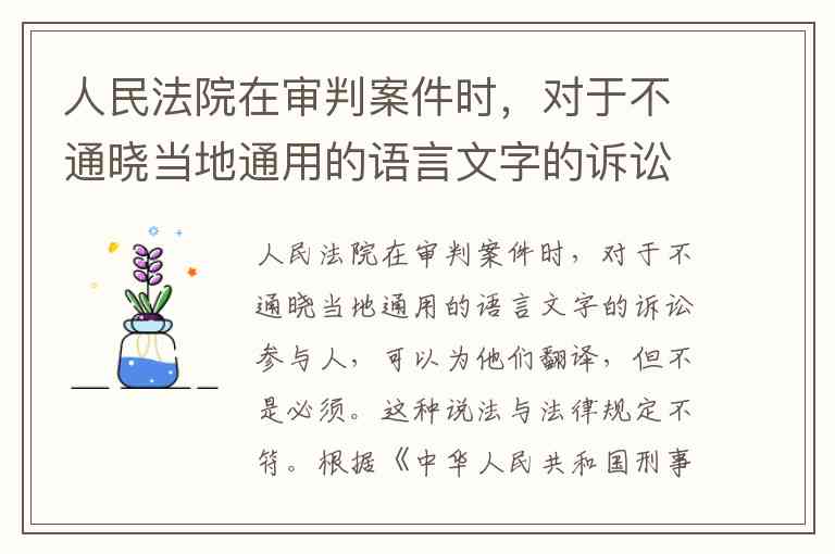 人民法院在审判案件时,对于不通晓当地通用的语言文字的诉讼参与人,可以为他们翻译,但不是必须。