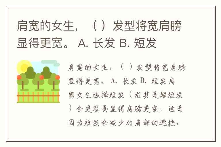 肩宽的女生,( )发型将宽肩膀显得更宽。 A. 长发 B. 短发