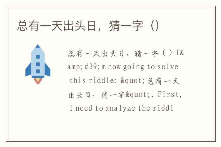 "总有一天" probably refers to the character "一" or the concept of "天". "出头日" might mean adding a part above "日" or making the "日" have an "出头". Let's think about "日" first. If we add an "出头" to "日", maybe it's "由" or "甲" or "申"? But the first part is "总有一天". "总有一天" could mean "有一天" or "包含一天". Maybe "一" + "天" is "夫"? No. Or "总有" might mean "总和" of "一天". "一天" is "日" (since a day is 日). "总有一天" could be "总" containing "日"? No. Wait, maybe the riddle is structured as: the answer is a character that, when you have "一天" (一 + 天) or "总有" (always have) "一天", and it has "出头日".