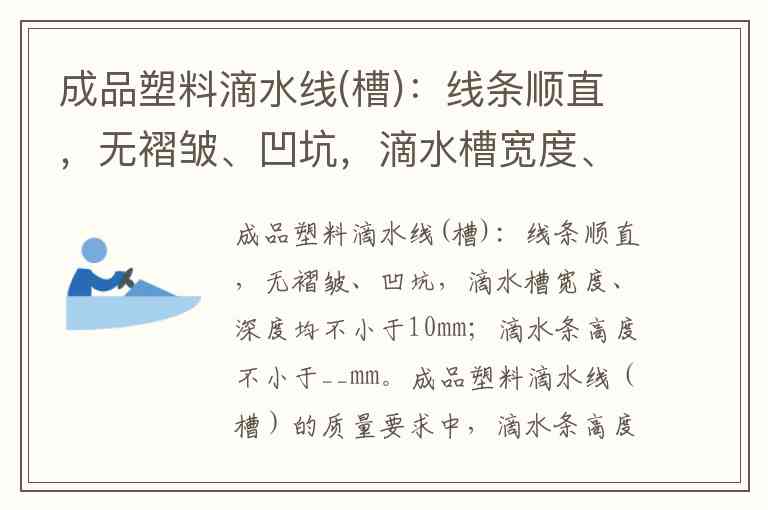 成品塑料滴水线(槽):线条顺直,无褶皱、凹坑,滴水槽宽度、深度均不小于10mm;滴水条高度不小于__mm。