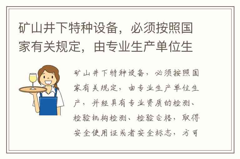 矿山井下特种设备,必须按照国家有关规定,由专业生产单位生产,并经具有专业资质的检测、检验机构检测、检验合格,取得安全使用证或者安全标志,方可投入使用。