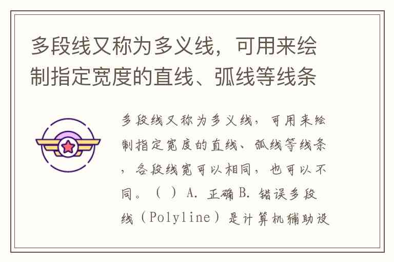 多段线又称为多义线,可用来绘制指定宽度的直线、弧线等线条,各段线宽可以相同,也可以不同。( ) A. 正确 B. 错误