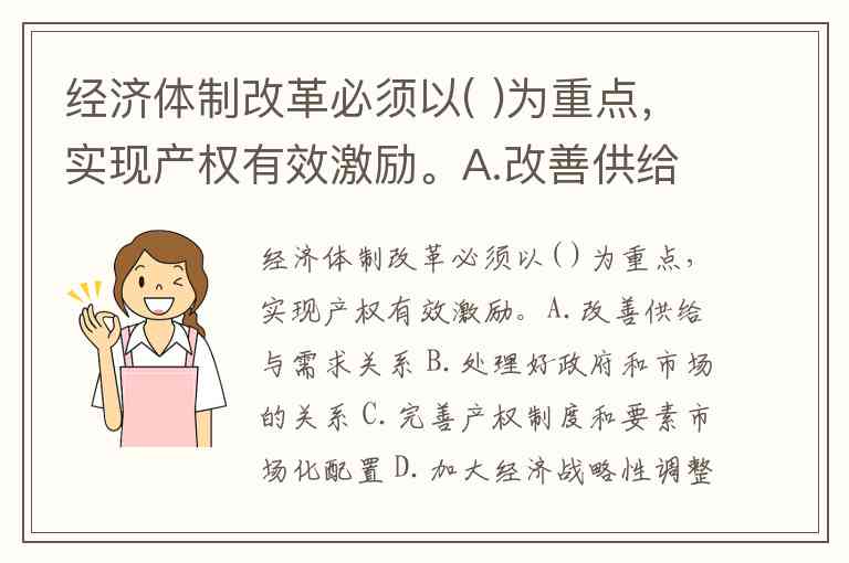 经济体制改革必须以( )为重点,实现产权有效激励。A.改善供给与需求关系 B.处理好政府和市场的关系 C.完善产权制度和要素市场化配置 D.加大经济战略性调整