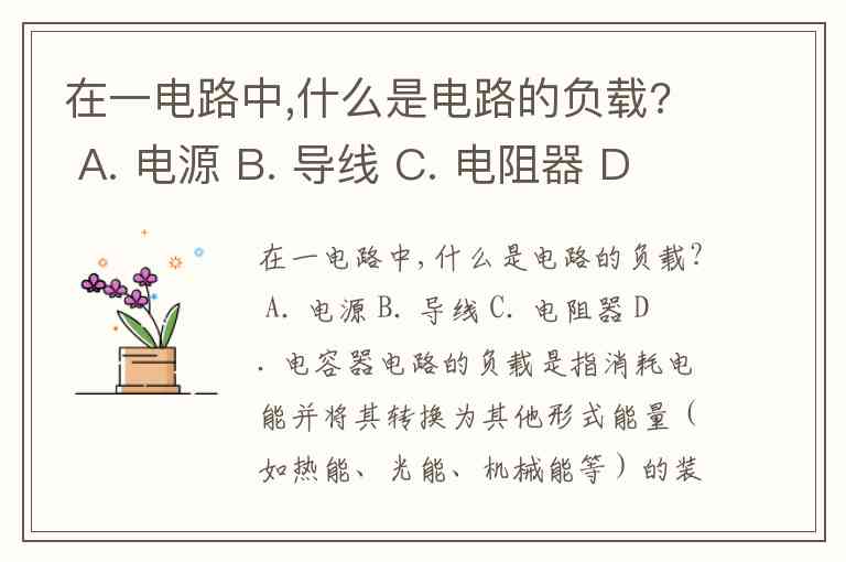 在一电路中,什么是电路的负载? A. 电源 B. 导线 C. 电阻器 D. 电容器